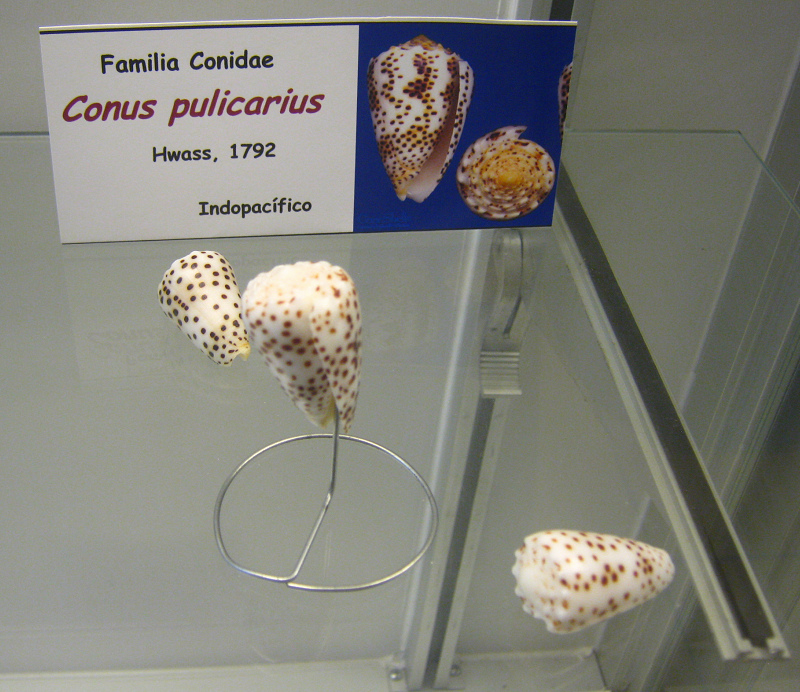 Museo del Mar de Arica 2.6: Caracoles del mar, vitrina 6 con Conus
