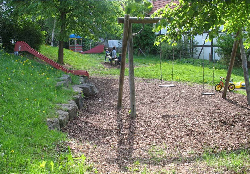 There where swings are installed or where Hollywood swings are installed, also soft soil should be installed for the case of falling accidents. The same counts for benches and beds. In some cases also an artificial lawn is not a bad solution.