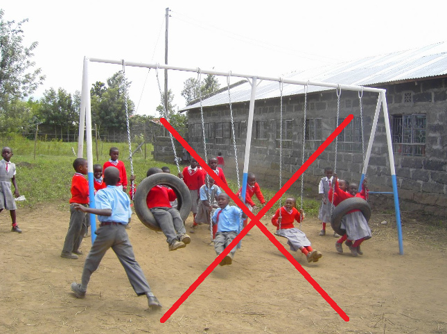 Negative swings 01 with too highly installed swings, the children are "hanging in the air", Weka Playground devices [35]