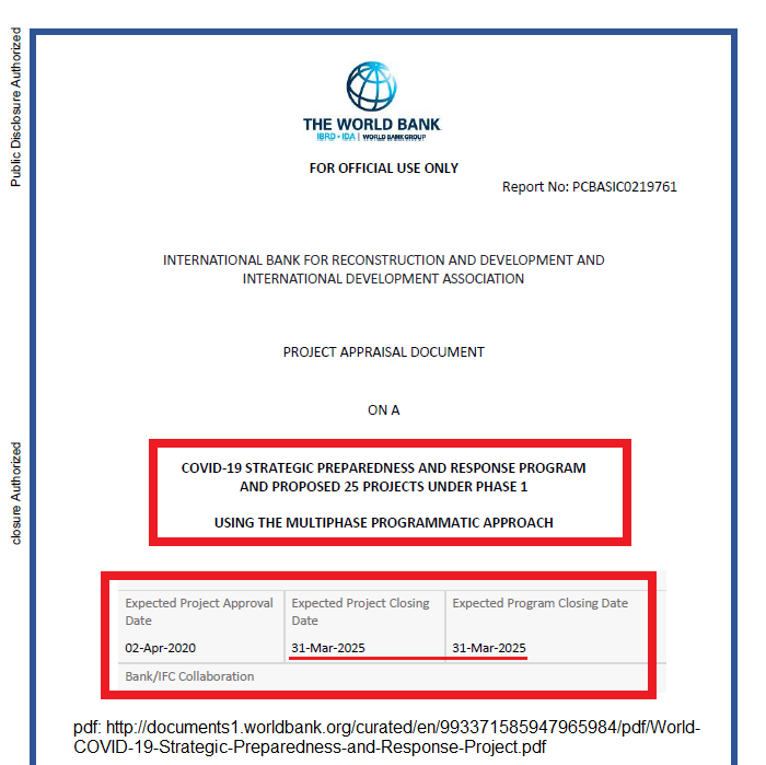 Die Weltbank hat das Programm Corona19 bis zum 31. März 2025 vorgesehen [6]