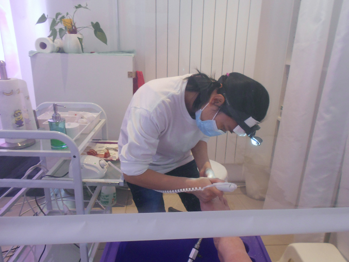 [4] Angestellte schleift Fussnägel ab: Foto von Michael Palomino 2021