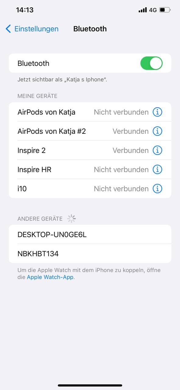 Meine erwachsenen Kinder sind mit Iphones ausgestattet. Mein Mann und ich mit Samsung. Die Bluetooth Geräte werden aber nur bei meinem alten Galaxy A3 (2017) angezeigt. Bei allen anderen sind die Geräte nicht sichtbar?! Am Wochenende wenn viele Nachbarn zuhause sind, zeigt es viele Codes an. LG