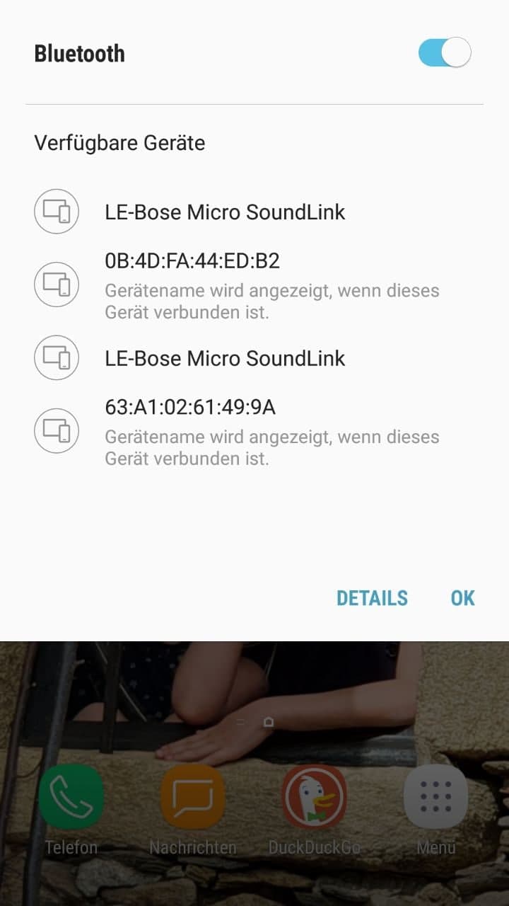 Hier bei mir zuhause sind meine Frau und ich... wir haben diverse Geräte mit Bluetooth im Hause... ABER MEIN BLUETOOTH SCANNER zeigt KEINE dieser unbekannten Bluetooth Mac Adressen an!