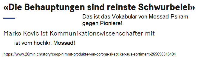 Wenn da jemand die Webseite von Rapunzel bei Coop denunziert, dann ist das wohl der Mossad, der immer Unruhe und Unfrieden gegen Deutsche stiften will. Das heisst nicht, dass da auf der Webseite von Rapunzel nun die Wahrheit steht oder gestanden ist, sondern man weiss ja bis heute nicht mal, woher der Corona19-Virus überhaupt kam. Oder alles war ein abgekartetes Spiel der hohen Logen.