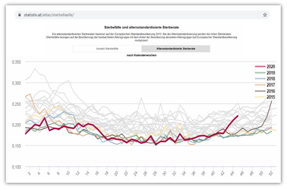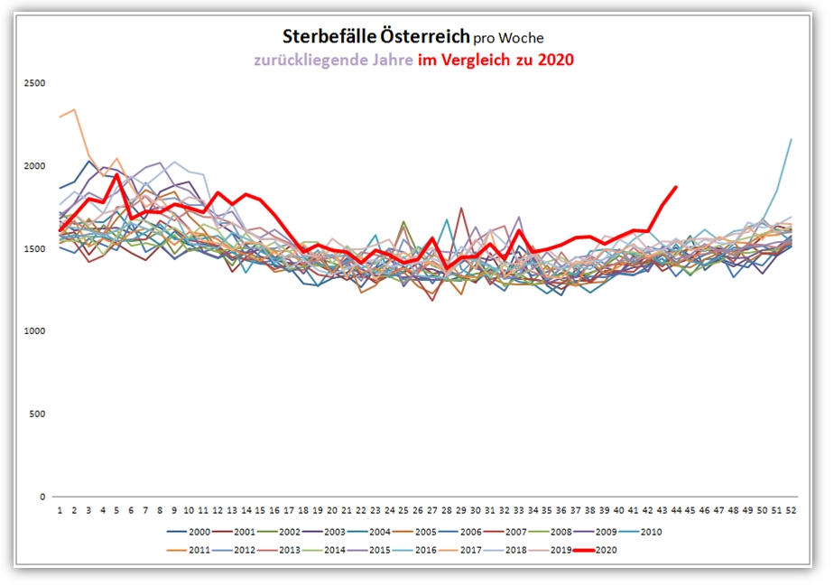 [11] Grafik der Sterblichkeit in Österreich 2000 bis 2020: