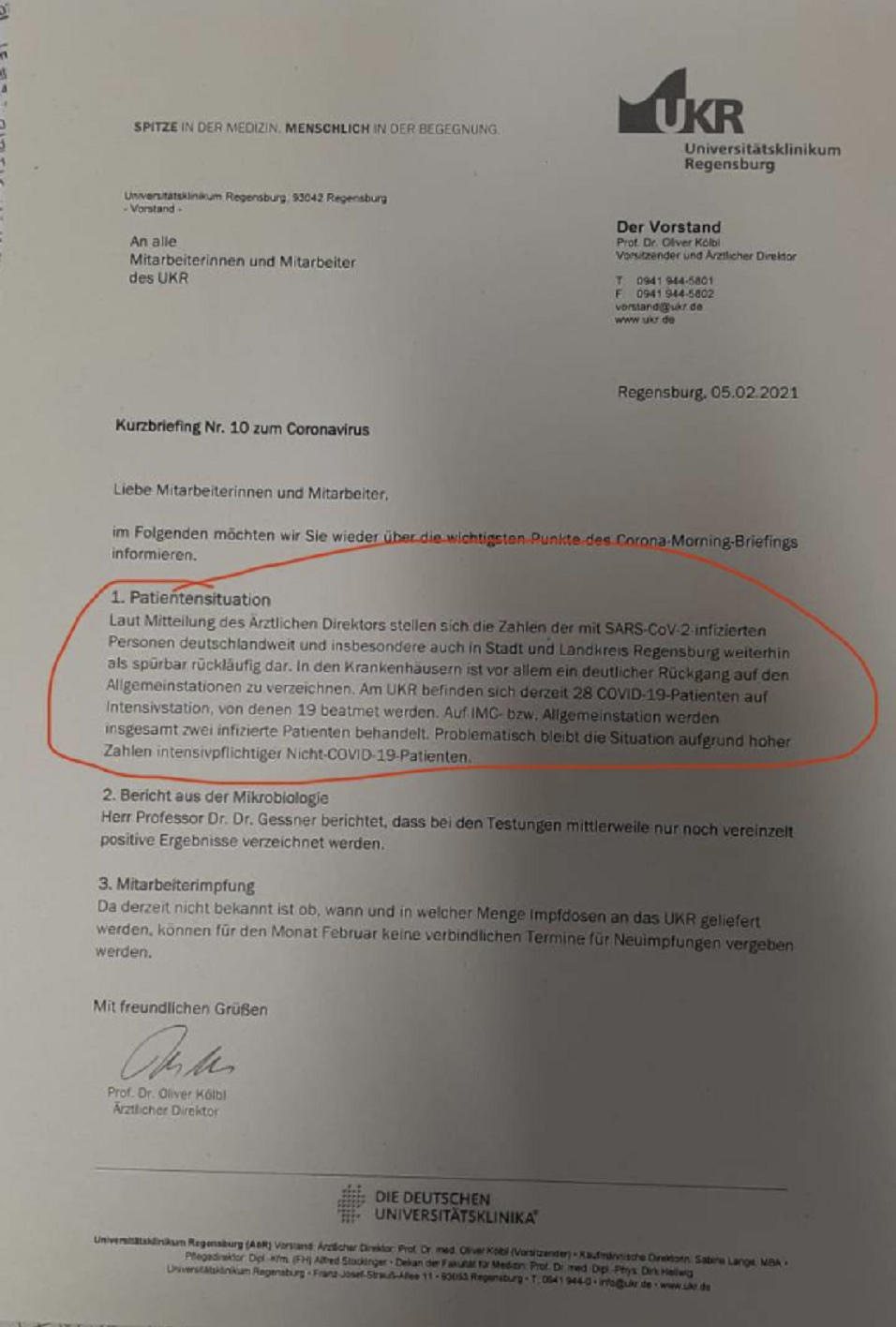 [3] UNIKLINIK REGENSBURG meldete am 5.2.2021: Corona19 ist