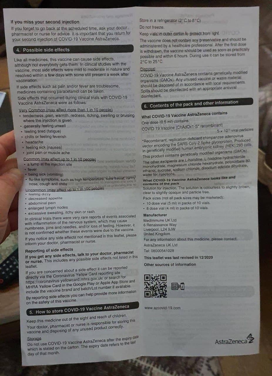 Giftspritze von AstraZeneca: Die Packungsbeilage sagt es: