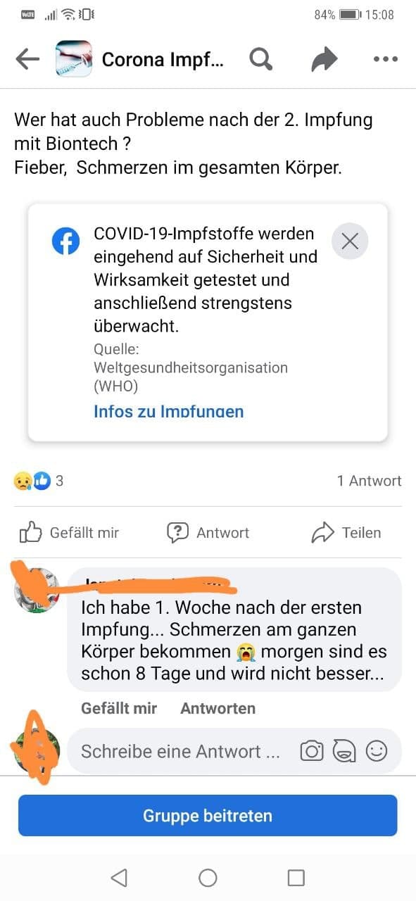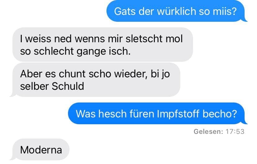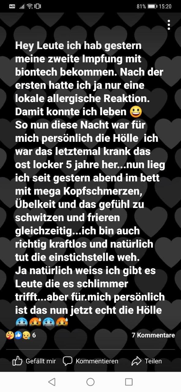 1. Von einer Bekannten die Freundin, 2x geimpft