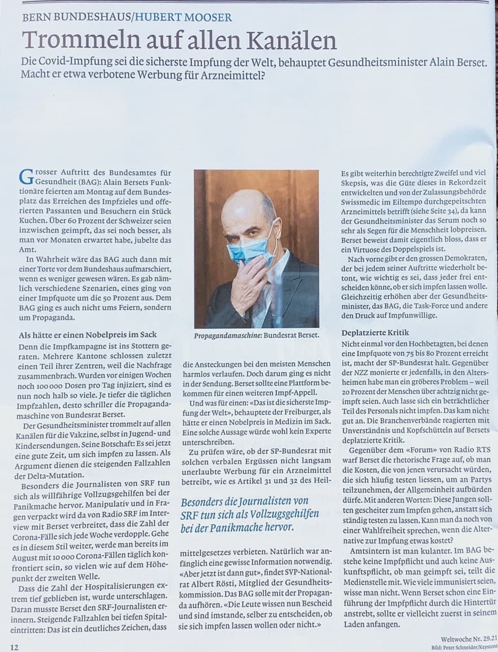 Bern 26.7.2021: Freimaurer Berset twittert, mit Moderna sind Impfdosen für 2-3 Jahre schon gekauft