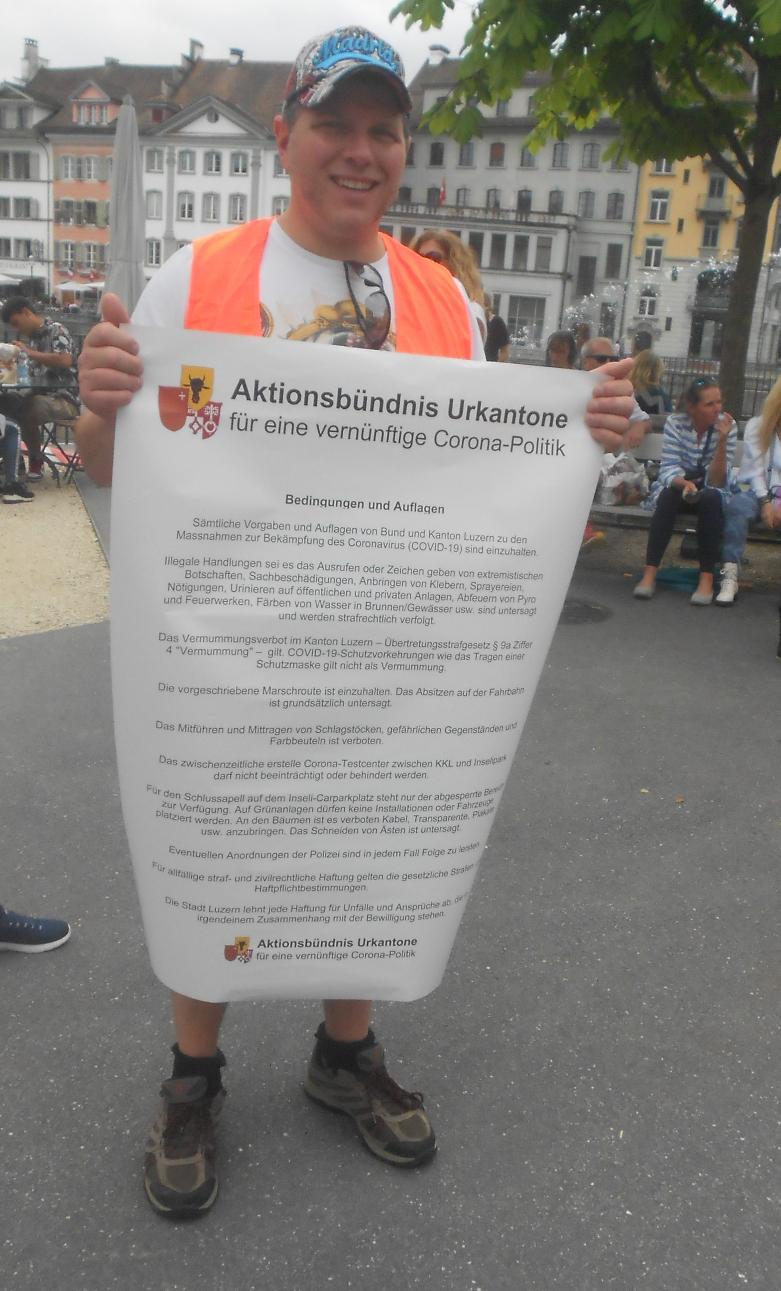 Demonstration für Grundrechte in Luzern am 31.7.2021: Sammelfoto 6: Kleber und "Platz der Freiheit" [9]