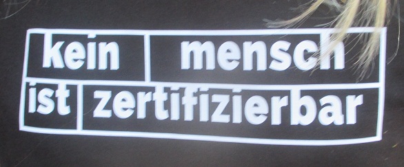 T-Shirt sagt klar: Kein Mensch ist zertifizierbar [24]