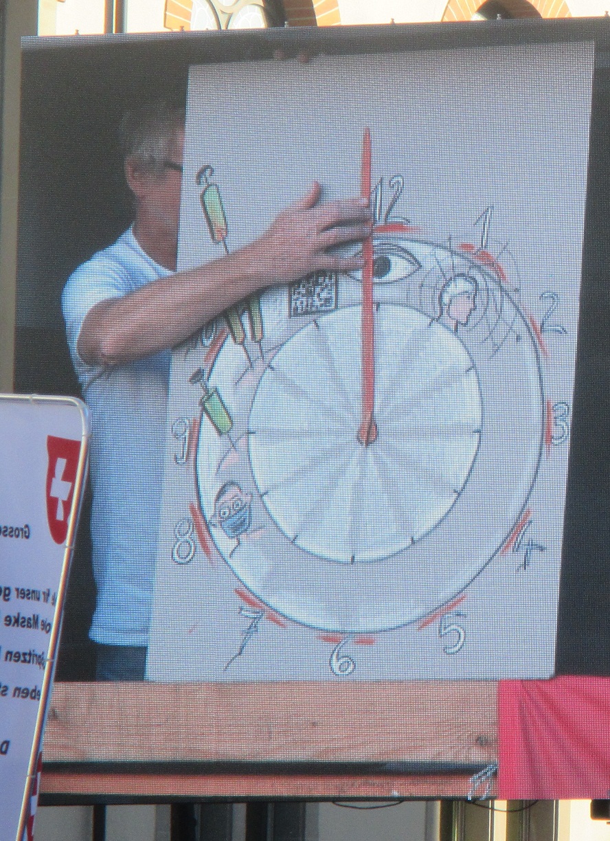 Demo Winterthur 18.9.2021: Die Impfuhr zeigt 12 Uhr an!
