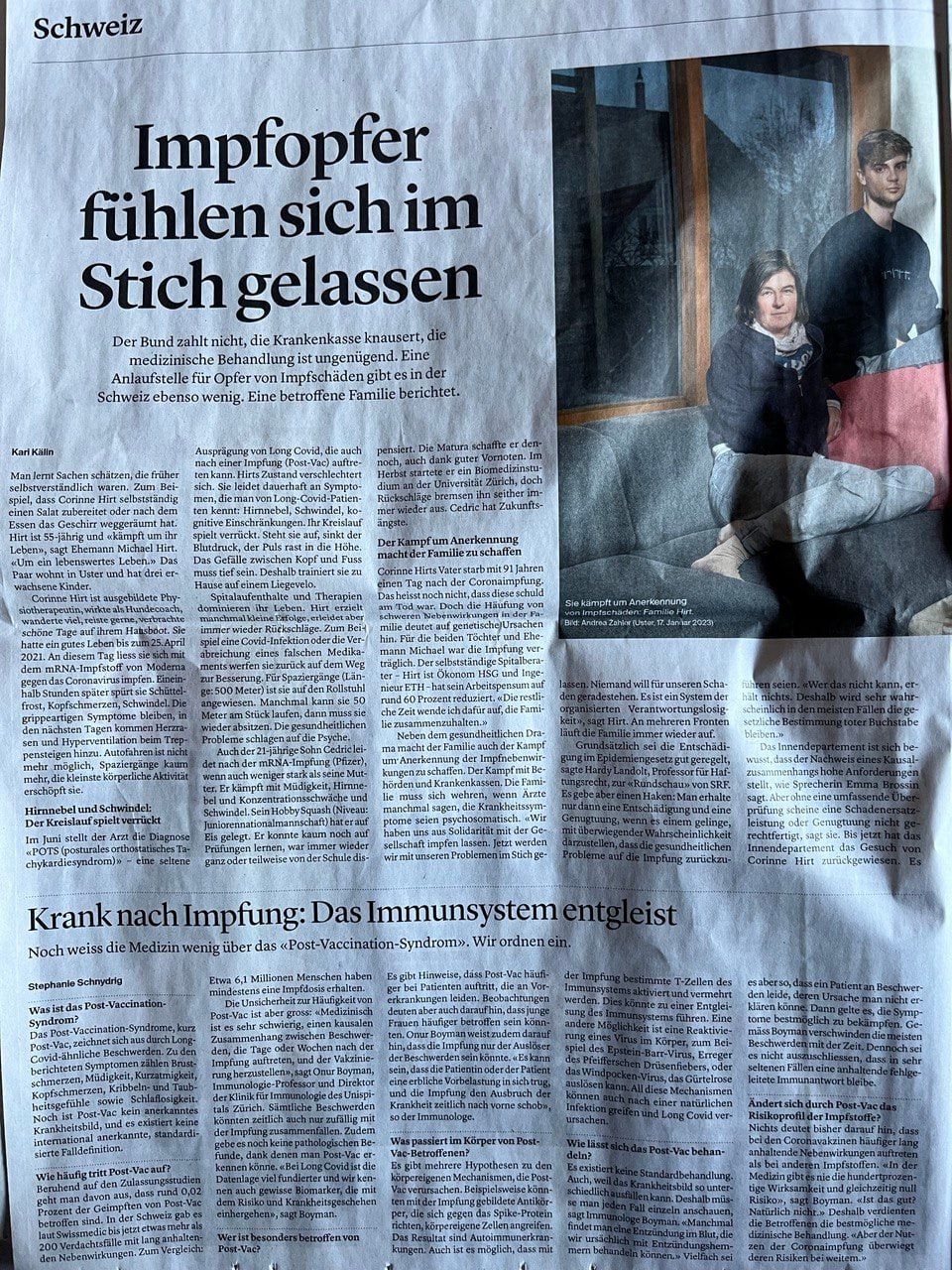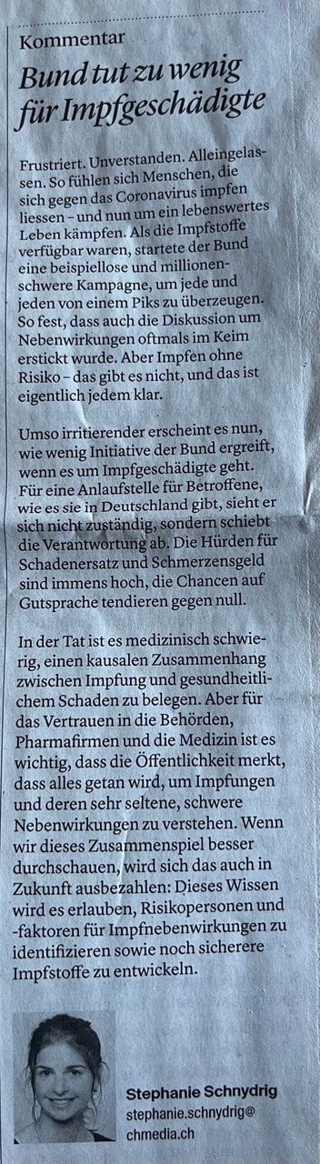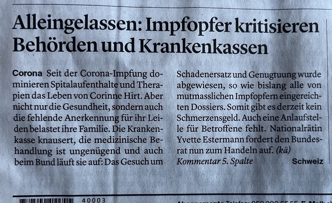 Impfschäden Schweiz Coronaimpfung, [25.01.2023 08:29]