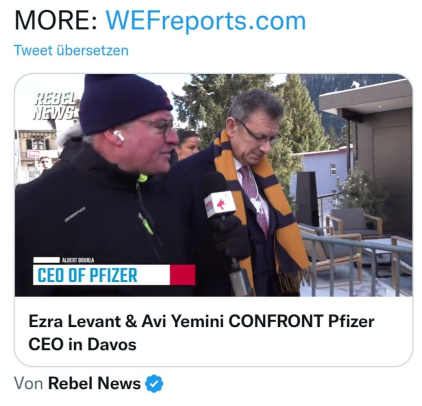 Widerstand gegen kriminelles WEF in Davos mit Pfizer 25.1.2023: Video von RebelNews über den kriminellen Juden Bourla ist auf FB, Instagram und YouTube schon gelöscht