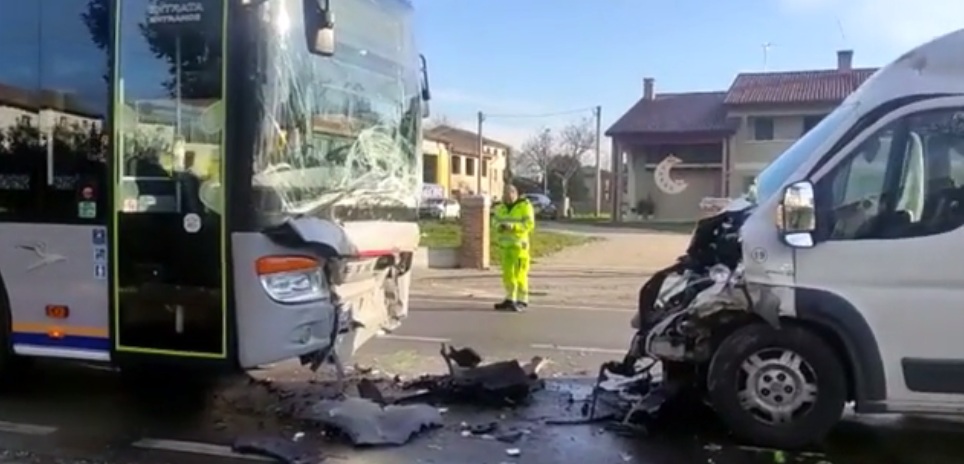 Verdacht Vaccident in Citadella (Italien) 25.1.2023: Schulbusfahrer hat Ohnmacht und kollidiert mit Linienbus: