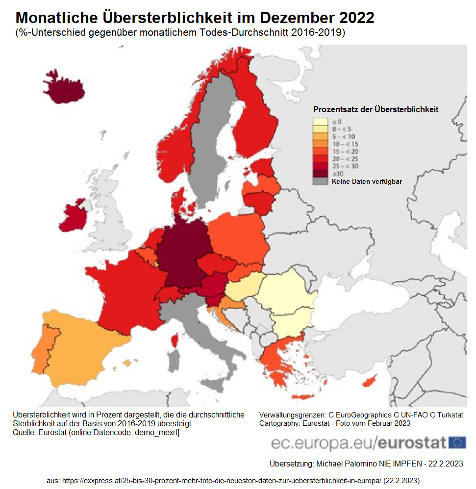 Zahlen Übersterblichkeit Europa 22.2.2023: