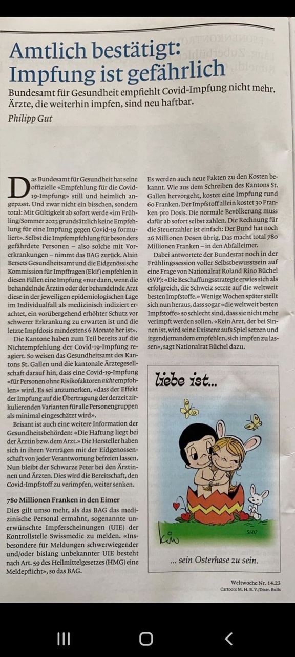 Impfschäden Schweiz Coronaimpfung, [11.04.2023 19:51]