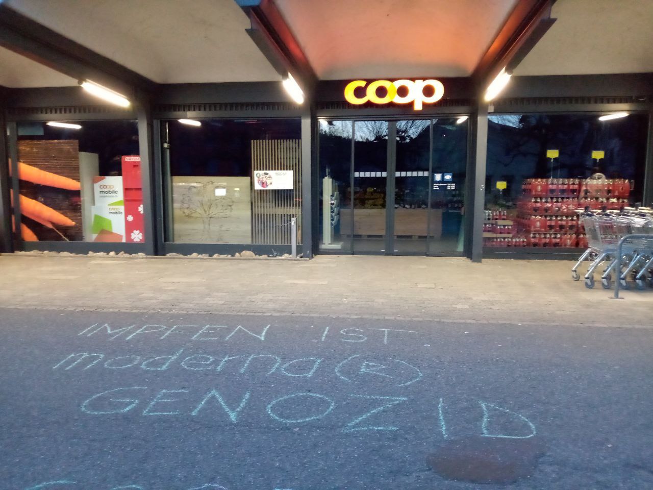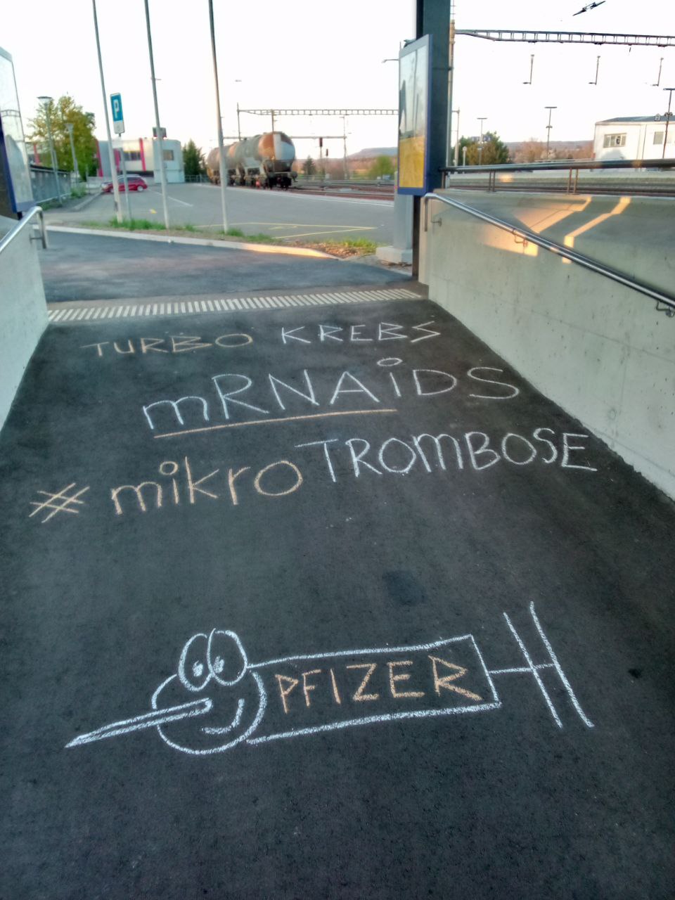 Widerstand Basel 9.4.2023: Graffito mit der Anweisung zum Ausleiten der "Coronaimpfung" [12]