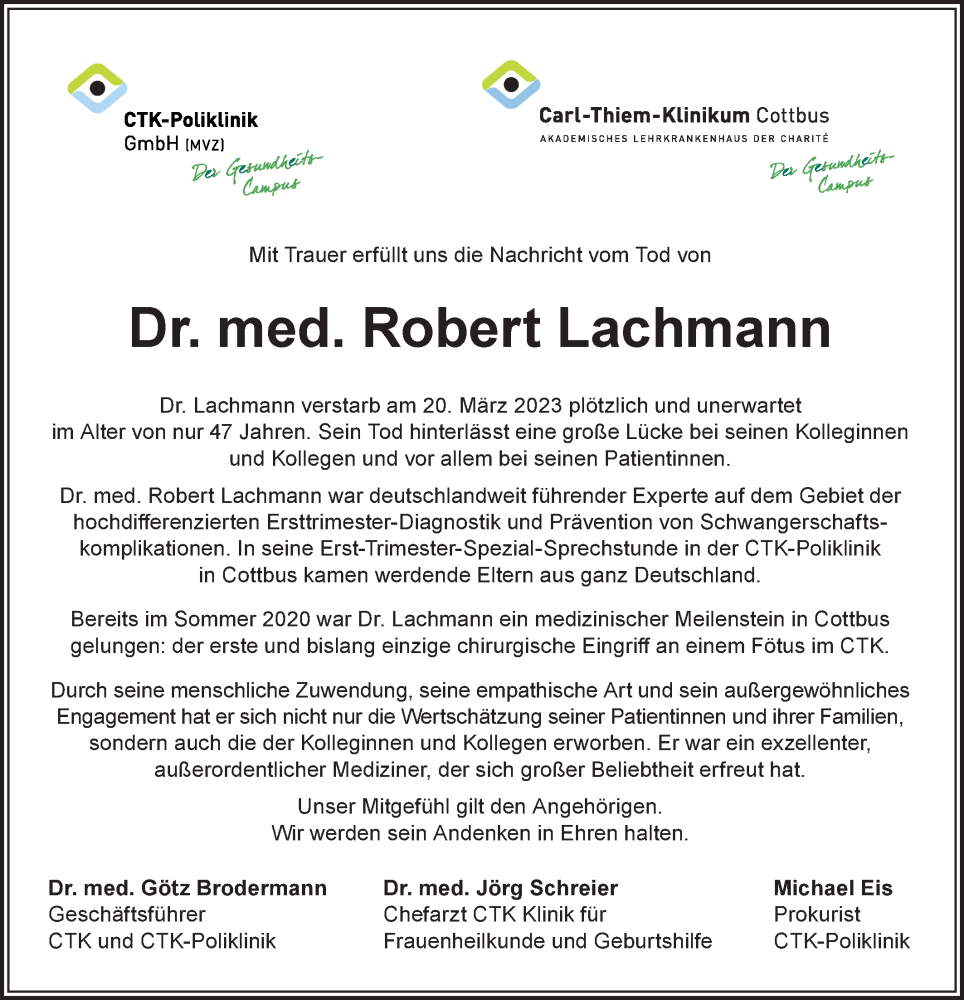 Cottbus (Brandenburg, 4R): Arzt mit 47 plötzlich gestorben: Er war Pränatal-Diagnostiker: Dr. Robert Lachmann [28]