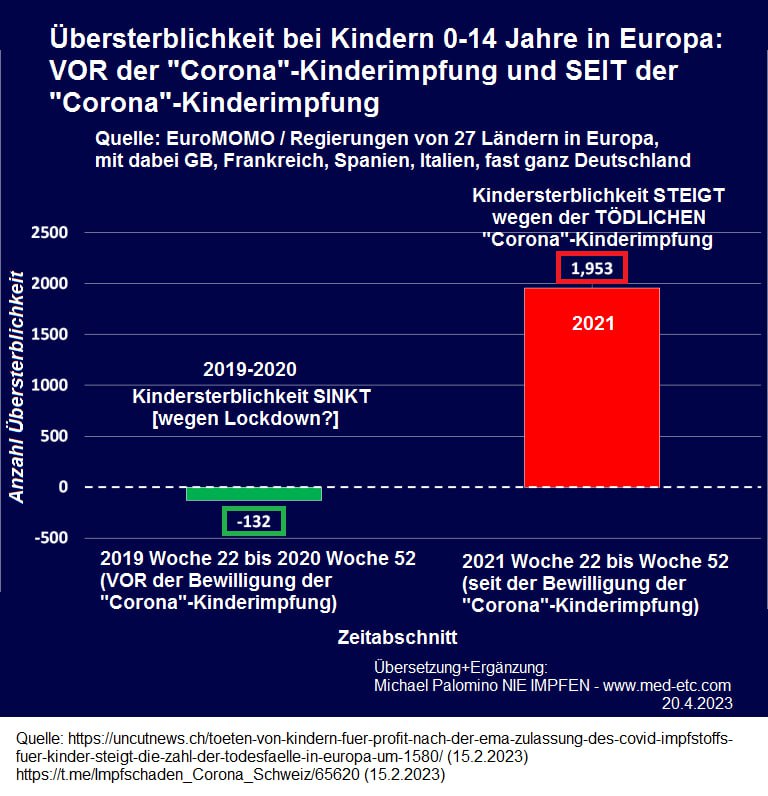 Kindersterblichkeit 20.4.2023: Im Jahre 2020 ging sie zurück - und seit 2021 der "Coronaimpfung" steigt sie ohne Ende - Grafik [24]