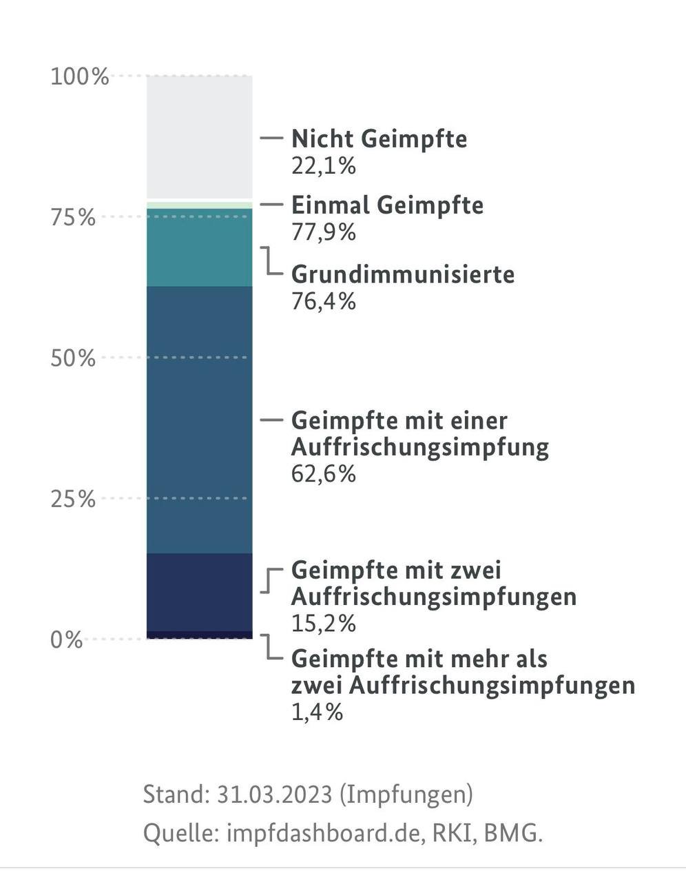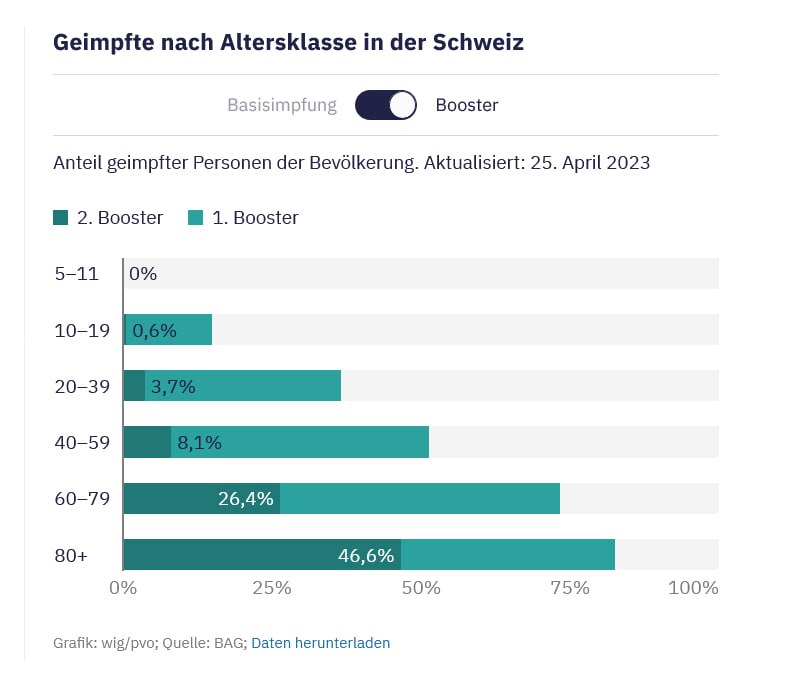 Zahlen Schweiz 2.5.2023: Wie viele % sind 1x oder 2x geimpft? Grafik [17]