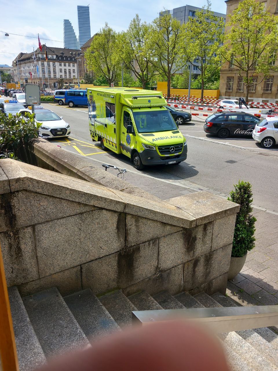 Krankenwagen Badischen Bahnhof in Basel 4.5.2023: pro Woche 1 bis 2mal - vor 2020 2x pro Jahr [39]