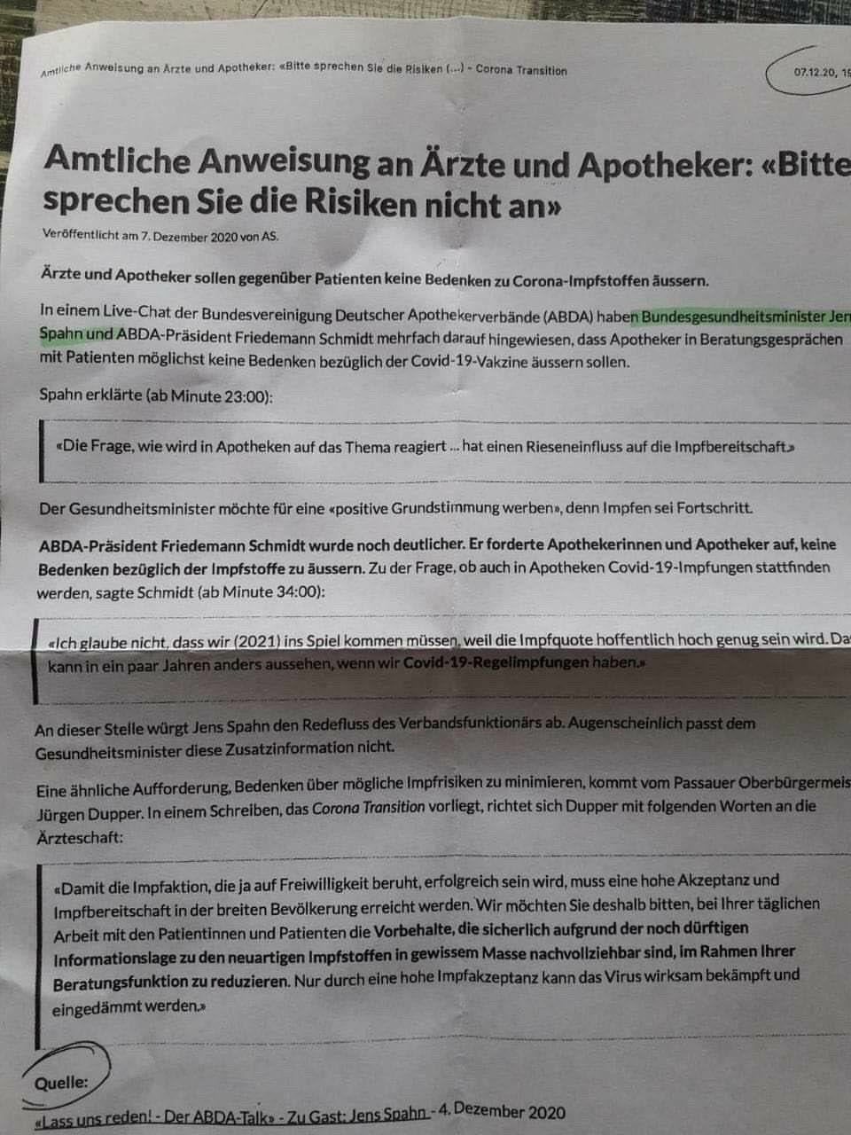 in Sachen Coronawahn und tödliche "Coronaimpfungen",