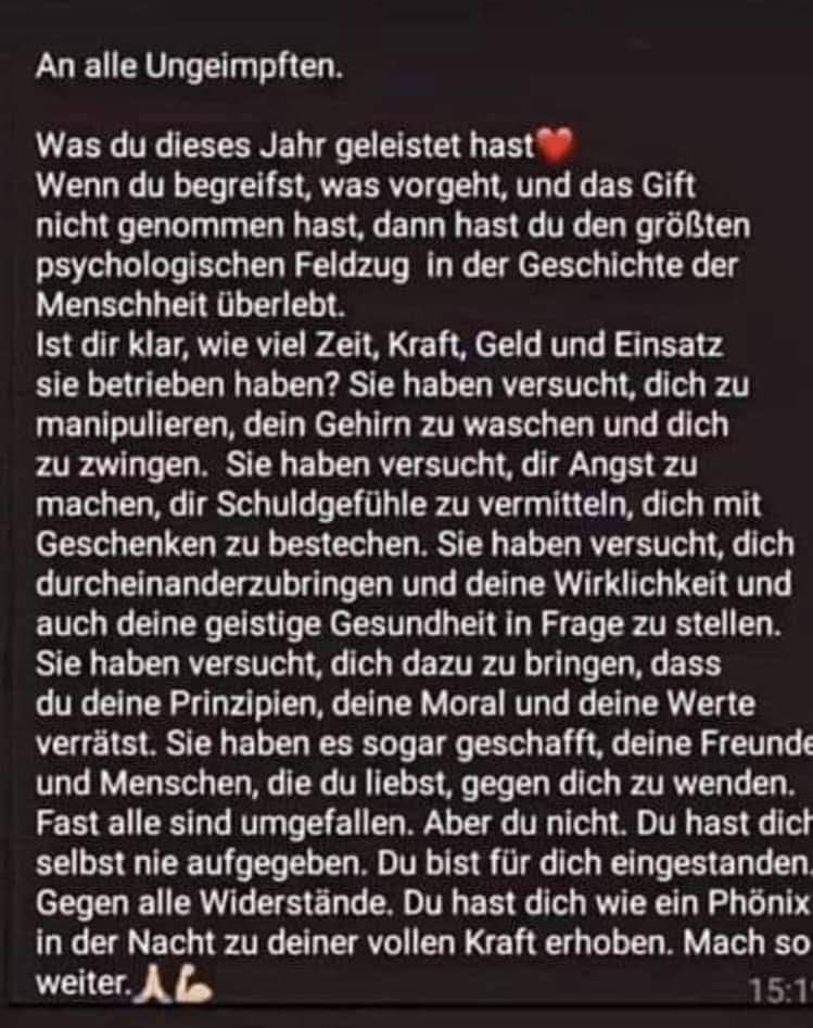 Nicht-Geimpften - von kranken Gengeimpften - und