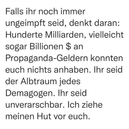 https://www.ungeimpft-gesund.info/  -  http://t.me/dersubjektivestudent  -  https://t.me/weltdergesundheitTV