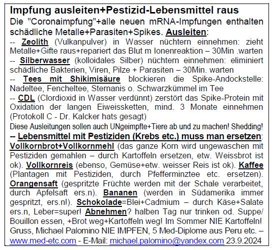 -- Berichte von Arzt Thomas Binder (Schweiz): https://t.me/DrThBi - Webseite: https://www.gesundstattgeimpft.ch
