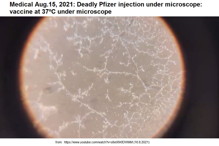 The mortal Pfizer injection under the microscope with 37ºC body temperature: The development shows crystalline structures [5]