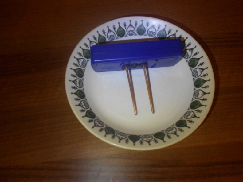 -- man steckt die Kupferstäbe in den Ionengenerator (Ionic Pulser), schliesst mit dem Netzteil den Strom an [web02]