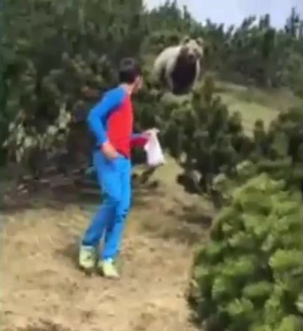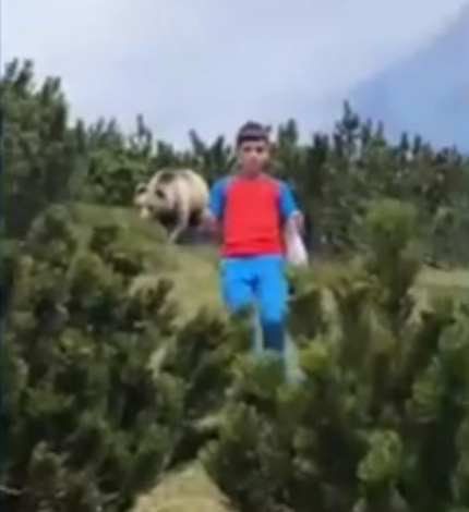 Südtirol (Italien) 24.5.2020: Bär verfolgt Bub -- Südtirol (Italien) 24.5.2020: Bär verfolgt Bub und stellt sich auf -- Südtirol (Italien) 24.5.2020: Bub schaut zurück zum Bär