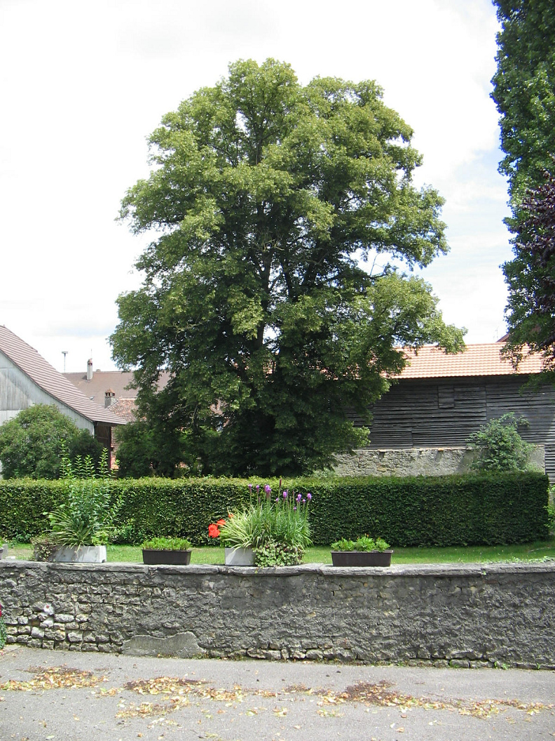 Route du Grand Chemin, grosse Linde, Laub, Samen und Rinde