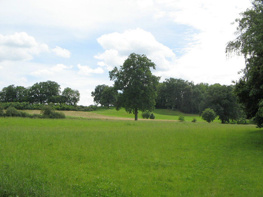 Bäume auf freier Wiese beim Chemin du Sansui