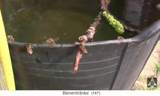 aus: Video: Bienentränke am Bienenstand (8'44''):
