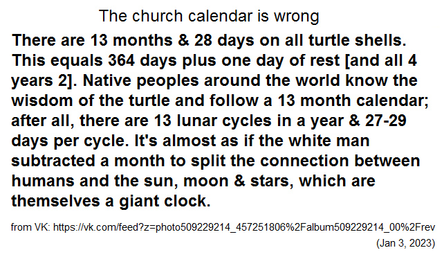 Jan 3, 2023: Lunar calendar with 13x28 days is on each turtle shell - photos with text vertically  [5]