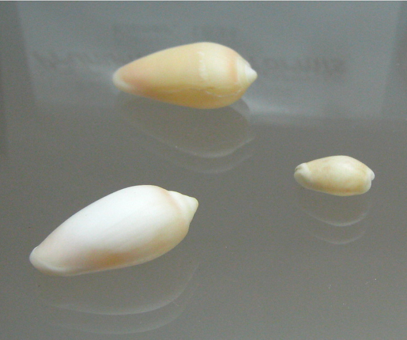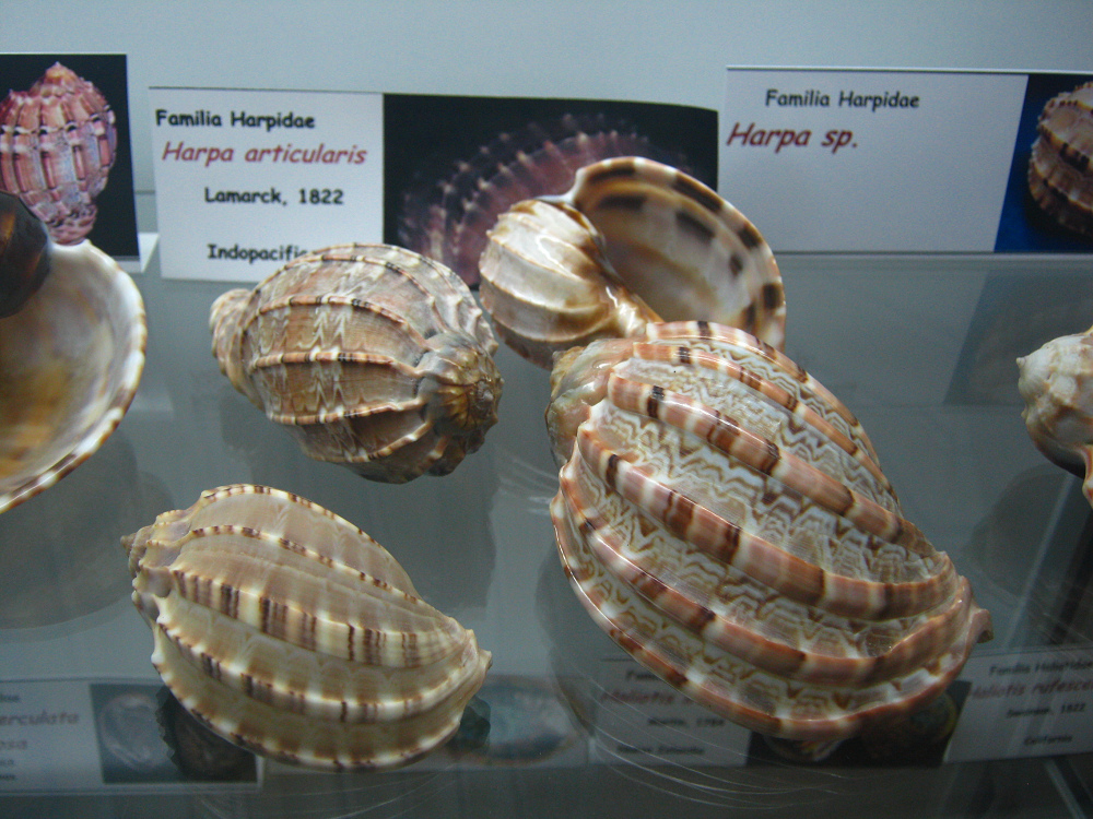 Harpidae - Marginellidae - Architectonicidae - Columbellidae - Angaridae - Turbinidae - Dentalidae - Cancellaridae - y caracoles de otras familias