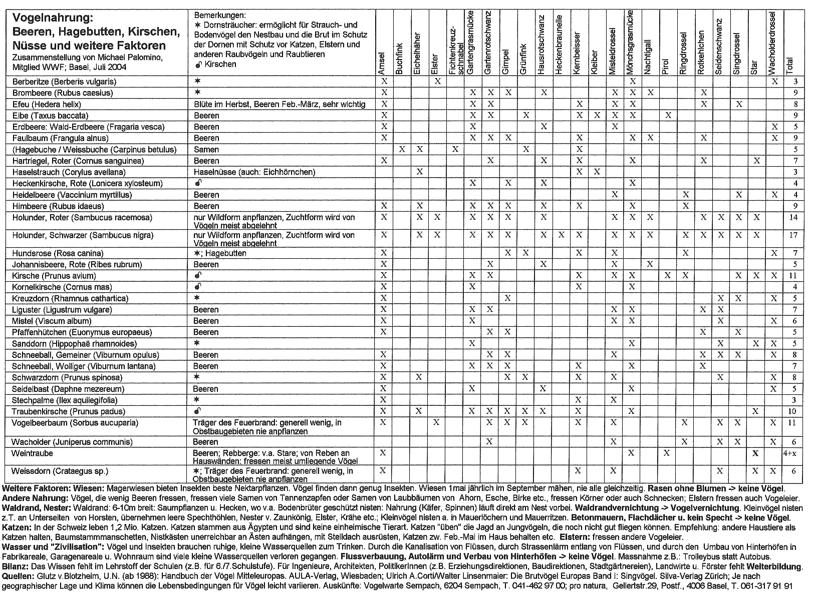 Hier ist die Webseite mit der Vogelnahrungstabelle und
