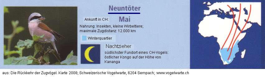 | Rotkopfwürger Zugvogel 1 Brut jährlich, 14 Tage Brut |