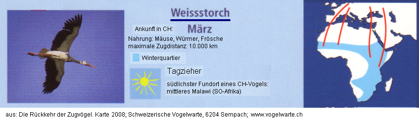 aus: Basler Zeitung online; 31.8.2011; http://bazonline.ch/basel/stadt/Spanische-Muelldeponien-bedrohen-Basler-Stoerche/story/16558536 Die Tage werden kürzer und kürzer. Für die Störche der Region ein Zeichen, dass es Zeit wird, in wärmere Gefilde aufzubrechen. Genau das machte vor einigen Tagen auch der Basler Storch Amelios, der im Frühling im Basler Zolli das Licht der Welt erblickt hat. Der Jungstorch wurde am 7. Juli mit einem kleinen Sender versehen, mit dessen Hilfe die Reise des Vogels mitverfolgt werden kann. Der Sender ist Teil eines Projekts, mit dem die Gesellschaft Storch-Schweiz das veränderte Zugverhalten der Störche analysieren möchte. Nachdem Amelios einige Zeit in der Region zwischen Wahlen und Oberwil hin und her gependelt ist, hat er ungefähr am 24. August die Schweiz verlassen, teilte der Basler Zolli heute mit. Am 26. August durchquerte der Vogel das Rhonetal. Über Montélimar, vorbei an Nîmes und Montpellier gelangte er entlang der Küste am 27. August nach Spanien. Tags darauf zog er entlang der Küste weiter und erreichte 12 Kilometer nördlich von Barcelona den Ort Cami de la Torra Negra. Das Rätsel um den Zug der Störche Dank den besenderten Störchen konnten nun gemäss Zolli erste Erkenntnisse gewonnen werden. Die Koordinaten eines anderen Storches zeugen von einem Aufenthalt auf einer Mülldeponie in Spanien, von welcher die Organisation Storch-Schweiz bisher keine Kenntnisse hatte. Bereits in früheren Jahren seien Ringrückmeldungen aus diesem Ort eingegangen. Dank der punktgenauen GPS-Koordinaten wisse man nun, dass sich auch jene Störche mit grösster Wahrscheinlichkeit auf dieser Mülldeponie aufgehalten hatten, schreibt der Zolli weiter. Eine seit längerem bekannte Deponie liege nur etwa 30 km entfernt. Amelios