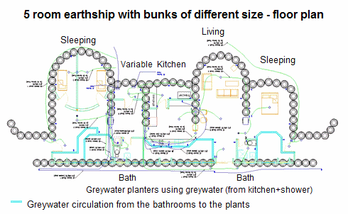 [29] 3 1/2-room earthship with 2 bathrooms in bunks for cold climates, floor plan: https://www.arch2o.com/earthships-michael-reynolds/