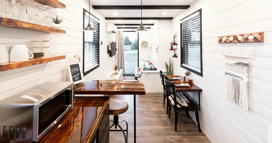 • Tiny Houses: Oft auf Rädern montiert, bieten sie zwischen 15 und 35 Quadratmeter Wohnfläche, ausgestattet mit allem, was es zum Wohnen braucht: Küche, Bad, Schlafloft und cleveren Stauraum.