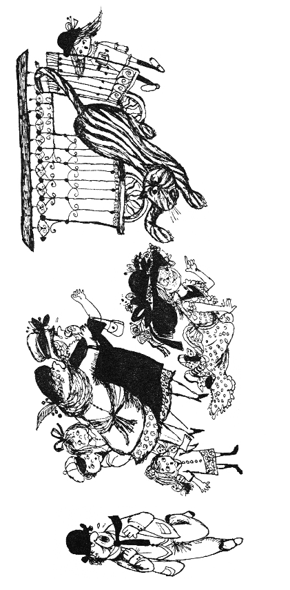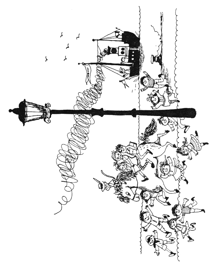 Pippi, Thomas, Annika and Mr. Nilsson are marching
