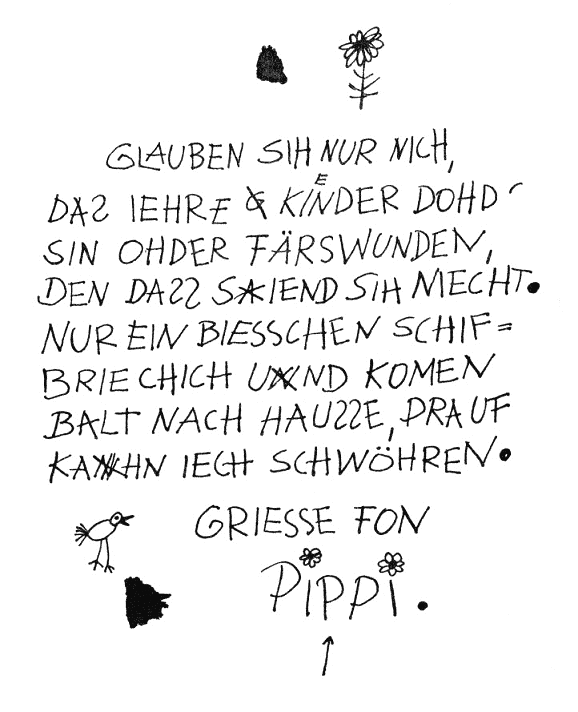 Langstrumpf an die Eltern Settergren, dass ihre Kinder