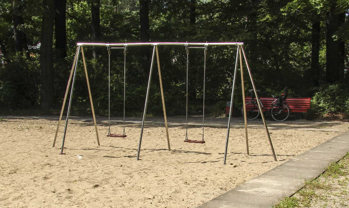 Negative swings 01 with too highly installed swings, the children are "hanging in the air", Weka Playground devices [35]
