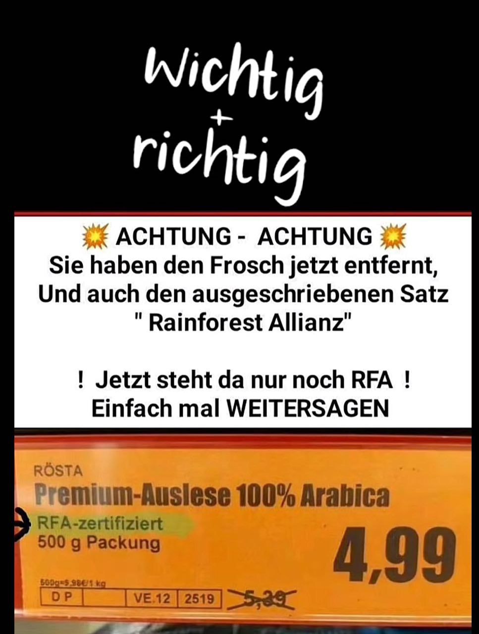 KEIN Giftfrosch-Logo azeptieren, keine Rainforest Alliance und auch keinen WWF-Panda oder Fairtrade mit dem YingYang-Zeichen akzeptieren, und Glyphosat ist IMMER erlaubt - es isch e Ckataschtroofe.