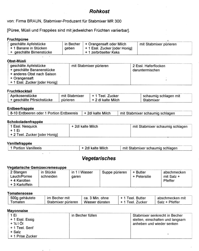 aus: Faltblatt zum Stabmixer MR 300 der Firma Braun