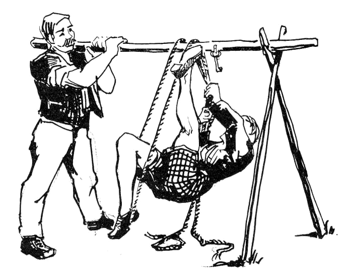 Im Vorfrühling, wenn sich vor dem Haus die Holzhaufen türmten, massen sich in der Schweiz die Jugendlichen in diesem Kraftspiel. Älpler führten dieses Ziehen auch stehend aus (S.26).