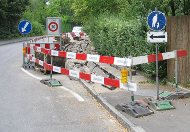 warnt vor Stellen, an denen häufig starker